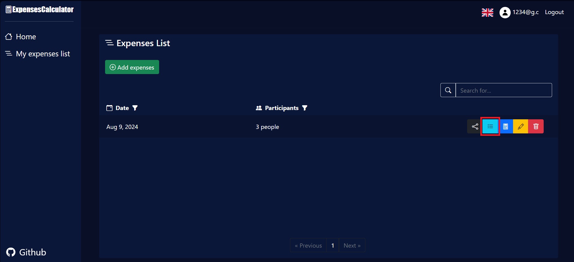 1. Select the "My expenses list" tab.